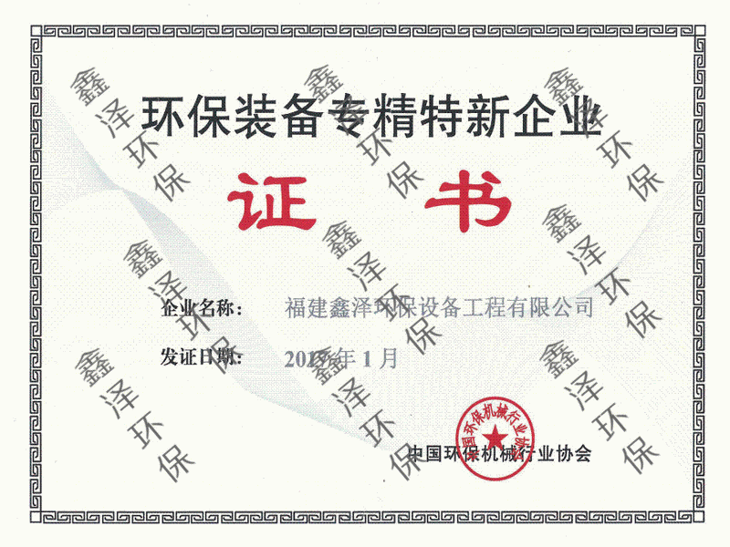 环保装备专精特新企业证书