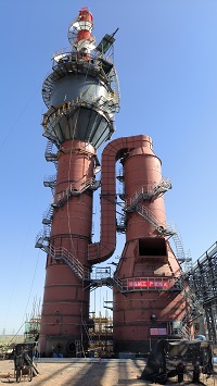 由福建鑫泽环保设备工程有限公司承建的鄂尔多斯新创新材料有限公司锂离子电池负极材料一体化项目石墨化炉烟气净化系统工程,二级脱硫湿电烟囱合一塔,于2023年6月21日湿电段吊装就位,2023年6月29日直排烟囱吊装封顶。