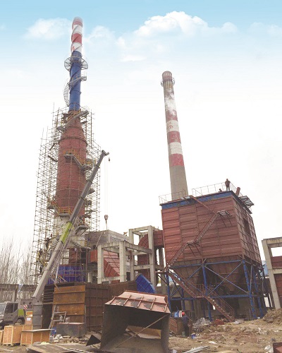 由我公司承建的许昌晨鸣纸业股份有限公司25t/h锅炉烟气超低排放项目,脱硫采用造纸白泥以废治废的脱硫工艺技术,除尘选用布袋除尘工艺。为确保工程工期需求,我公司提前进场进行预制施工,与业主土建施工同步进行,在脱硫塔基础交付使用时,于2017年9月29日正式开工组装。在参建各方的共同努力下,60m烟塔合一脱硫塔于2017年11月8日顺利吊装封顶。 目前,脱硫塔内玻璃鳞片防腐已进入收尾阶段,布袋除尘系统安装有序进行,烟道正在安装,塔体外侧开始保温,设备、管道进入安装工序,电气电仪系统施工也全面展开。 许昌晨鸣超低排放项目各专业、各工种、各施工方已全部进入项目现场,给项目管理提出了更高的要求。我公司项目部将再接再厉,做好攻坚阶段的安全、质量管理,严格把控、精心规划、积极协调,力争按业主要求的工期目标努力推进项目建设。