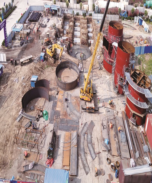 日照华泰纸业有限公司海右经济开发区热电联产项目170t/h循环流化床锅炉烟气脱硫项目-湿式电除尘项目自进场施工以来,项目部精心协调和周密组织,克服现场场地不够和土建交叉施工等困难,经过一个月的制作施工,目前已完成吸收塔壁板卷板、吸收塔变径段、筒体Ⅱ、塔体进口、底板和底环等的预制拼装,人孔门及塔体管口法兰预制完成。