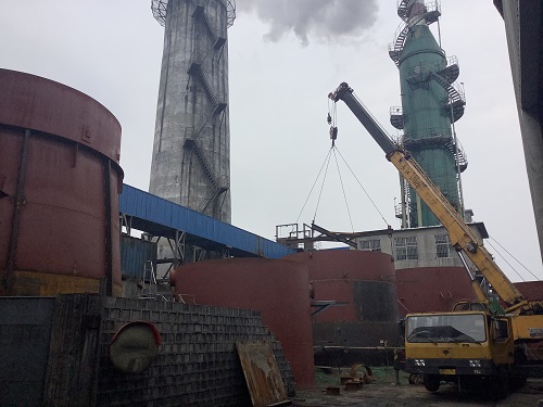 由我公司承建的山西沁新集团5、6#锂离子电池负极材料原料制备车间烟气脱硫、除尘项目,在公司领导下,经项目部现场实际情况合理规划,积极与业主方沟通,协调各参建单位,现已完成6#塔塔体分段拼装组对工作,即将进入6#塔吊装阶段,同时5#塔的下料预制工作也在有条不紊的进行中。